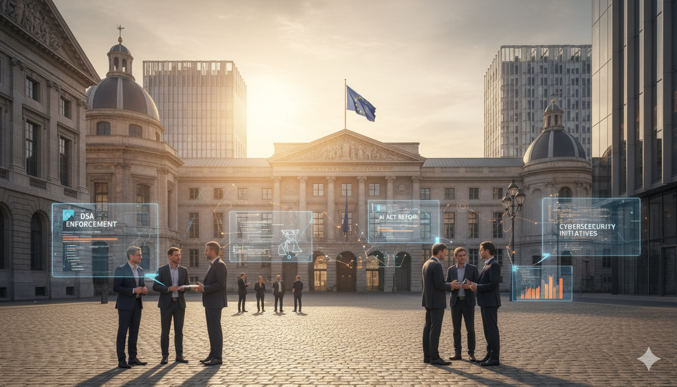 his week’s EU digital policy developments range from AI Act reform and DSA enforcement to cybersecurity under NIS2, data protection, and global digital sovereignty. Key topics include chat control, Mistral AI, Horizon Europe, and the EU’s pragmatic shift from law-making to enforcement.
